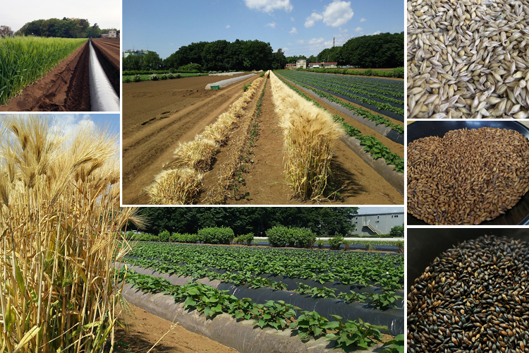 麦の根は深く張り、土に空気を含ませます。土中のセンチュウ類を減らしたり土を肥沃にする効果もあるようです。麦の実はもちろん食用に。また刈り取った麦わらは苗床の材料にもなります。昔の人の知恵を、実践です。栽培中農薬は使用しておりません。